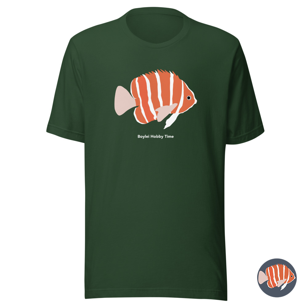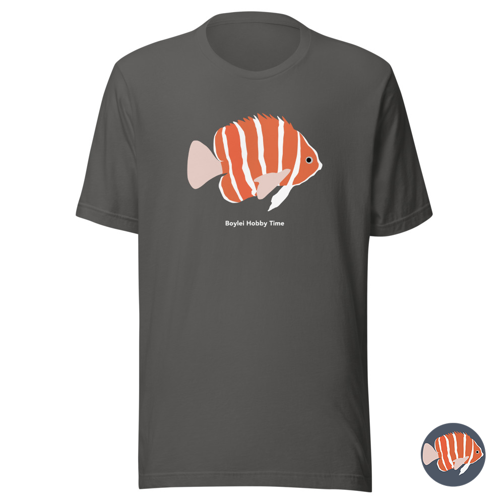 Place the end of the tape beside the collar at the top of the tee (Highest Point Shoulder). Pull the tape measure to the bottom of the shirt.