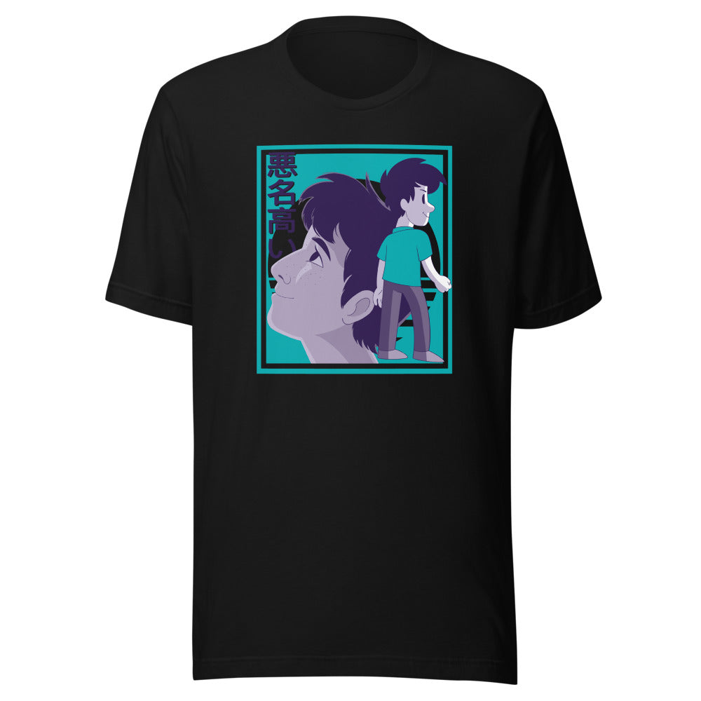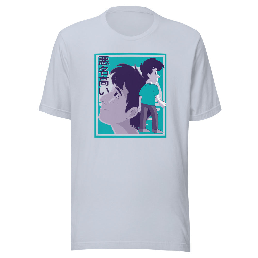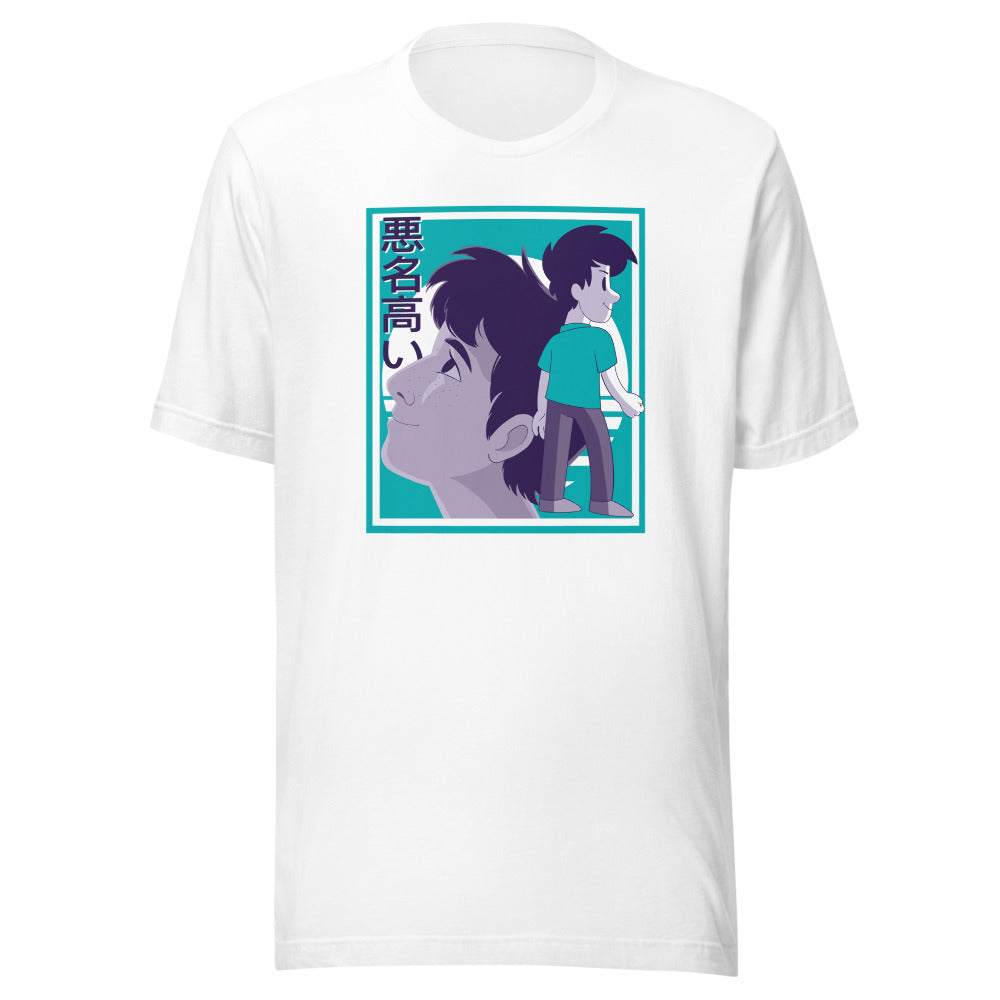 Place the end of the tape beside the collar at the top of the tee (Highest Point Shoulder). Pull the tape measure to the bottom of the shirt.