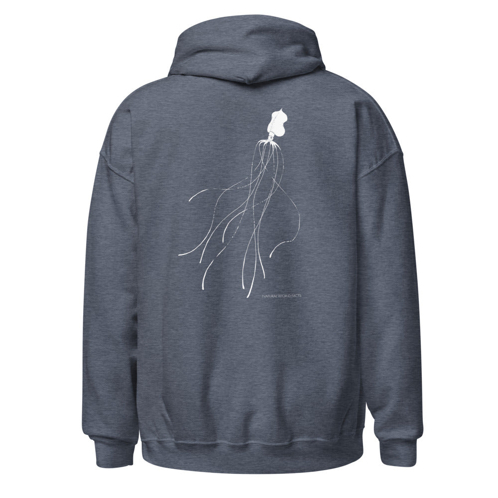 The Magnapinna or bigfin squid is the deepest known squid species in the ocean, having been sighted as deep as 6,212 metres (20,381 ft) below the surface. Their anatomy is unique among squids; their arms and tentacles are of equal length and identical, held perpendicular to the body in a fashion that resembles the strings of a marionette puppet with jointed elbow-like structures. Little is known about the life history or feeding strategy of this species, but the presence of long, draping arms and tentacles has lead scientists to postulate that they feed by dragging these appendages along the seafloor below and ‘fishing’ for prey on the great silt sea of the deep's Abyssal Plain! Their tentacles, which contain elastic filaments, may recoil when they come in contact with prey, drawing the food up towards the mouth. What it is exactly that they're eating remains a mystery.