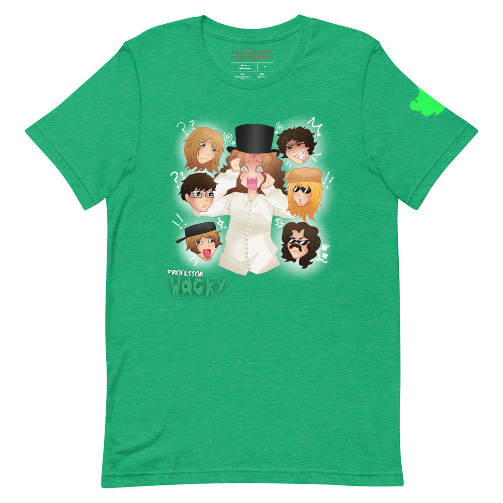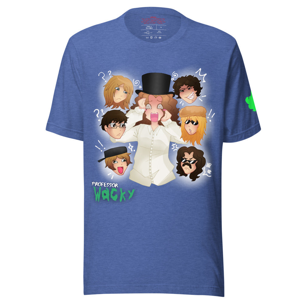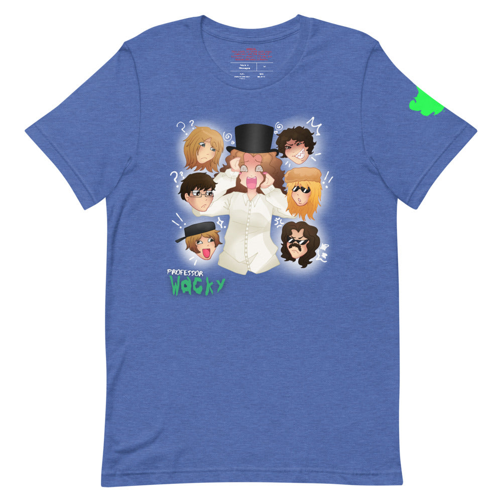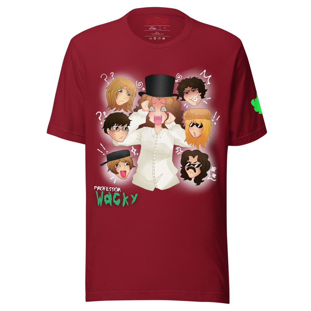 Now you can FINALLY WEAR Professor Wacky and the gang on this premium high quality T-shirt, featuring art done by the talented @mary_estreyah! This T-shirt also features a green splash of an acidic substance on the left sleeve, alongside with a very very honest label on the inside of the collar.