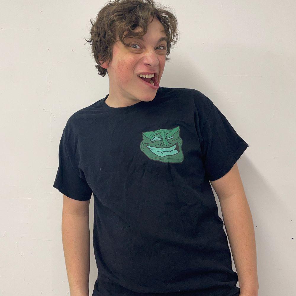Place the end of the tape beside the collar at the top of the tee (Highest Point Shoulder). Pull the tape measure to the bottom of the shirt.