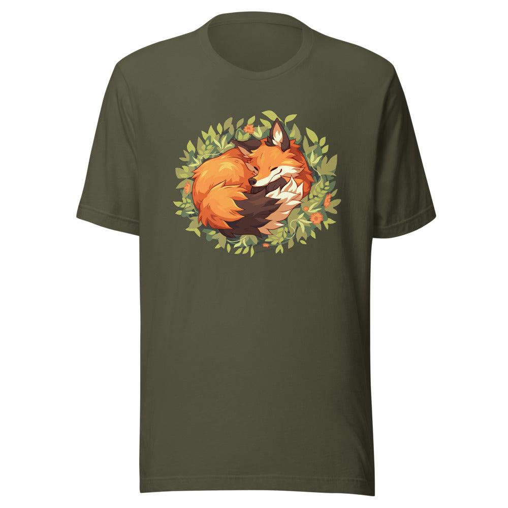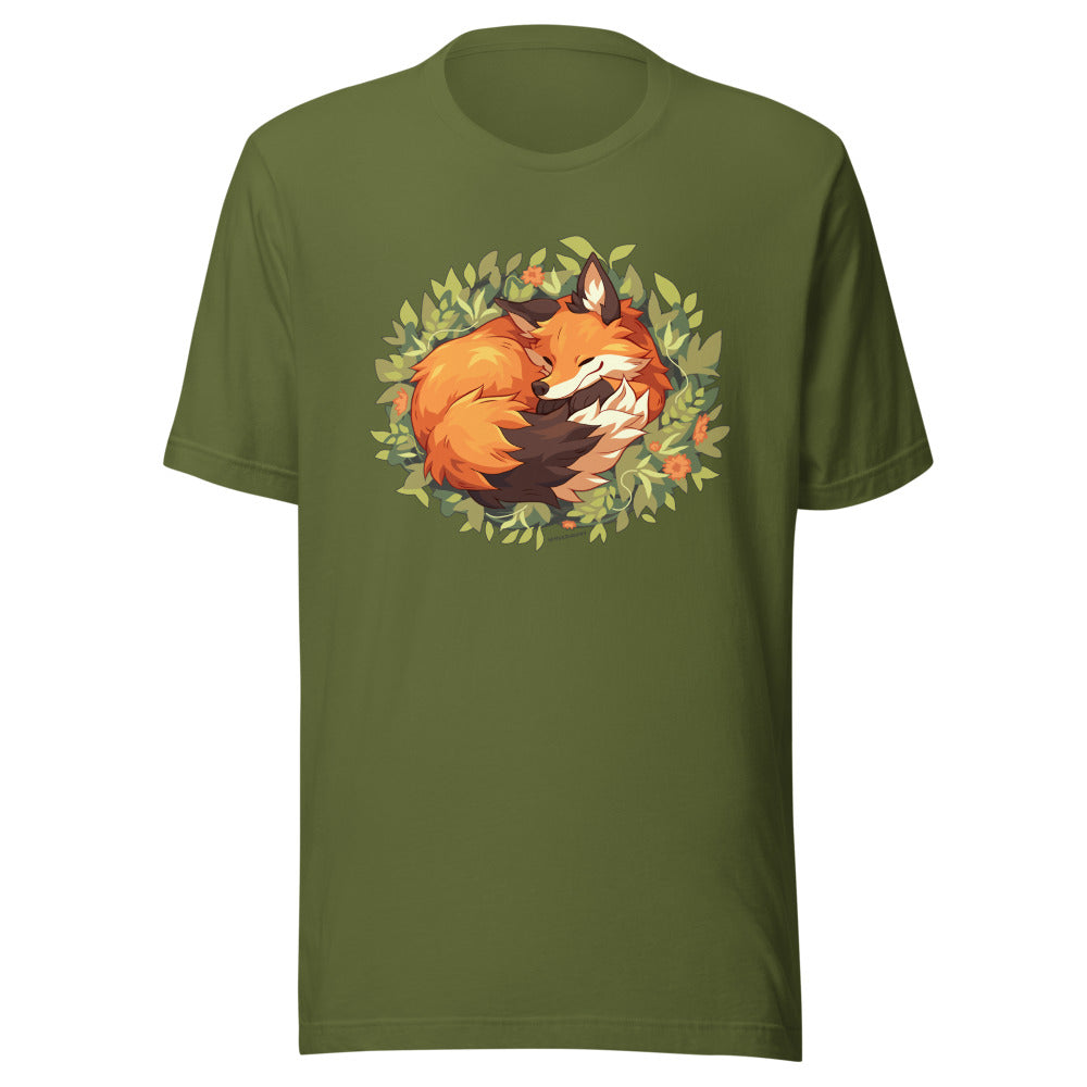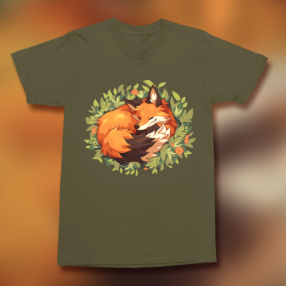 Peacefully sleeping fox surrounded by floral accents. Artwork by wingedwolf94.