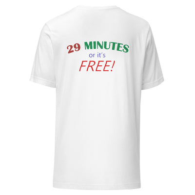 Place the end of the tape beside the collar at the top of the tee (Highest Point Shoulder). Pull the tape measure to the bottom of the shirt.