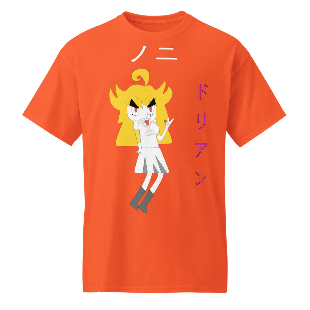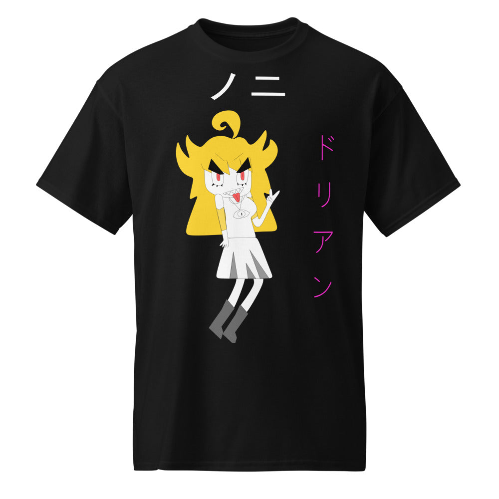 Place the end of the tape beside the collar at the top of the tee (Highest Point Shoulder). Pull the tape measure to the bottom of the shirt.