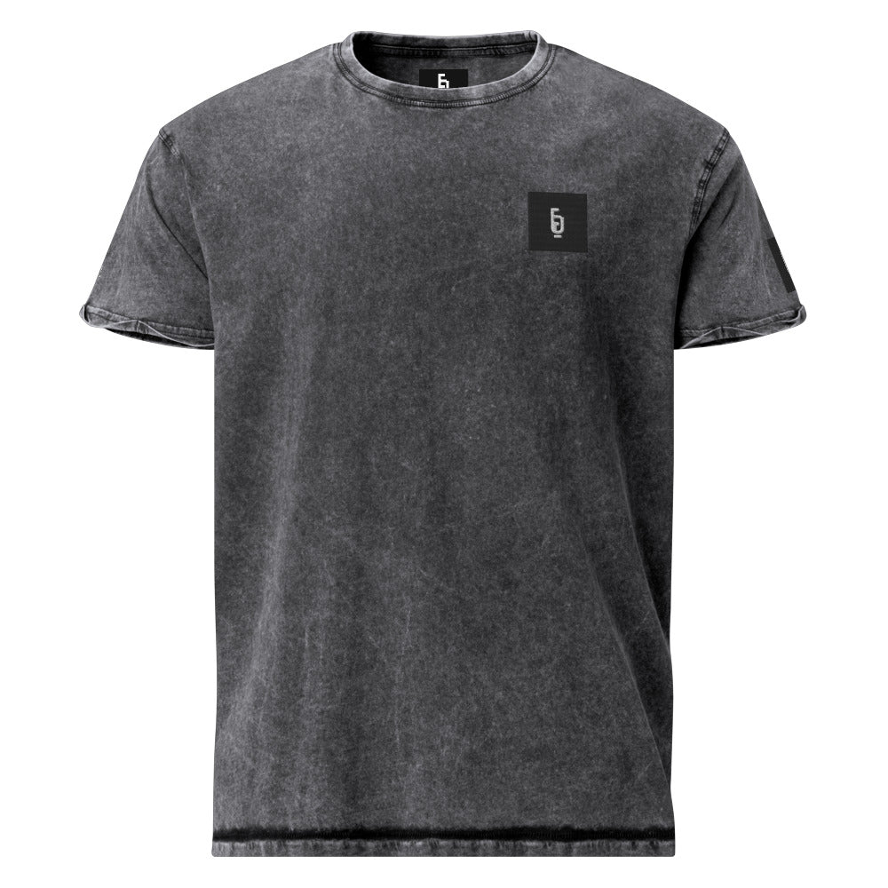 Place the end of the tape beside the collar at the top of the tee (Highest Point Shoulder). Pull the tape measure to the bottom of the shirt.